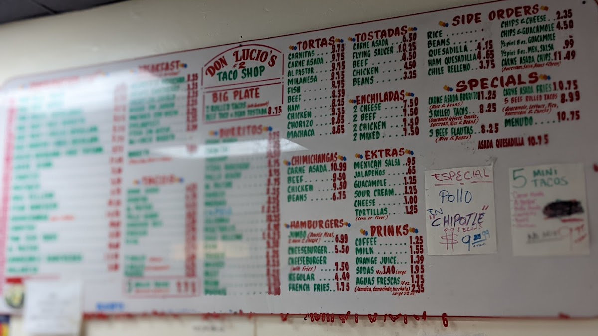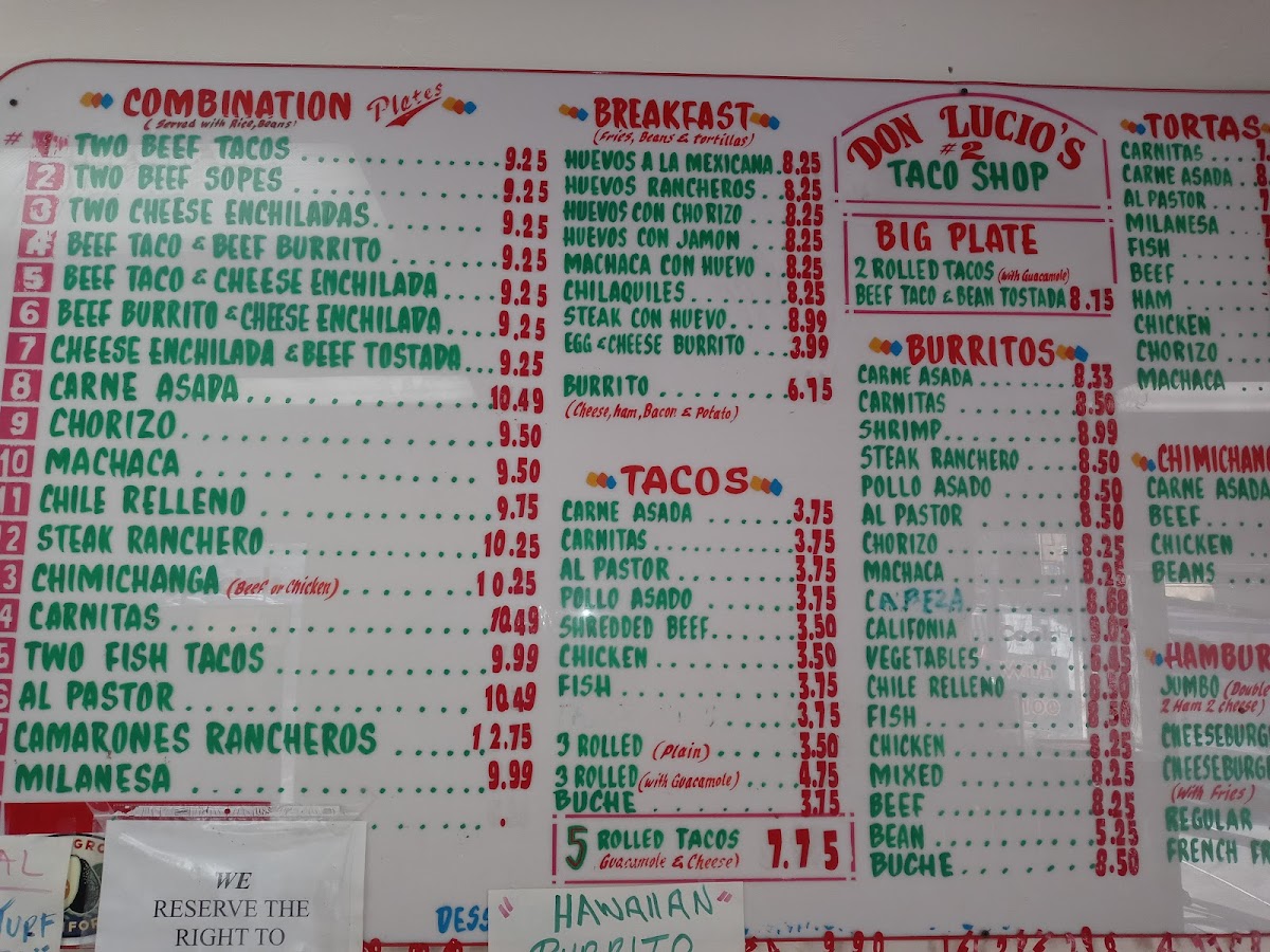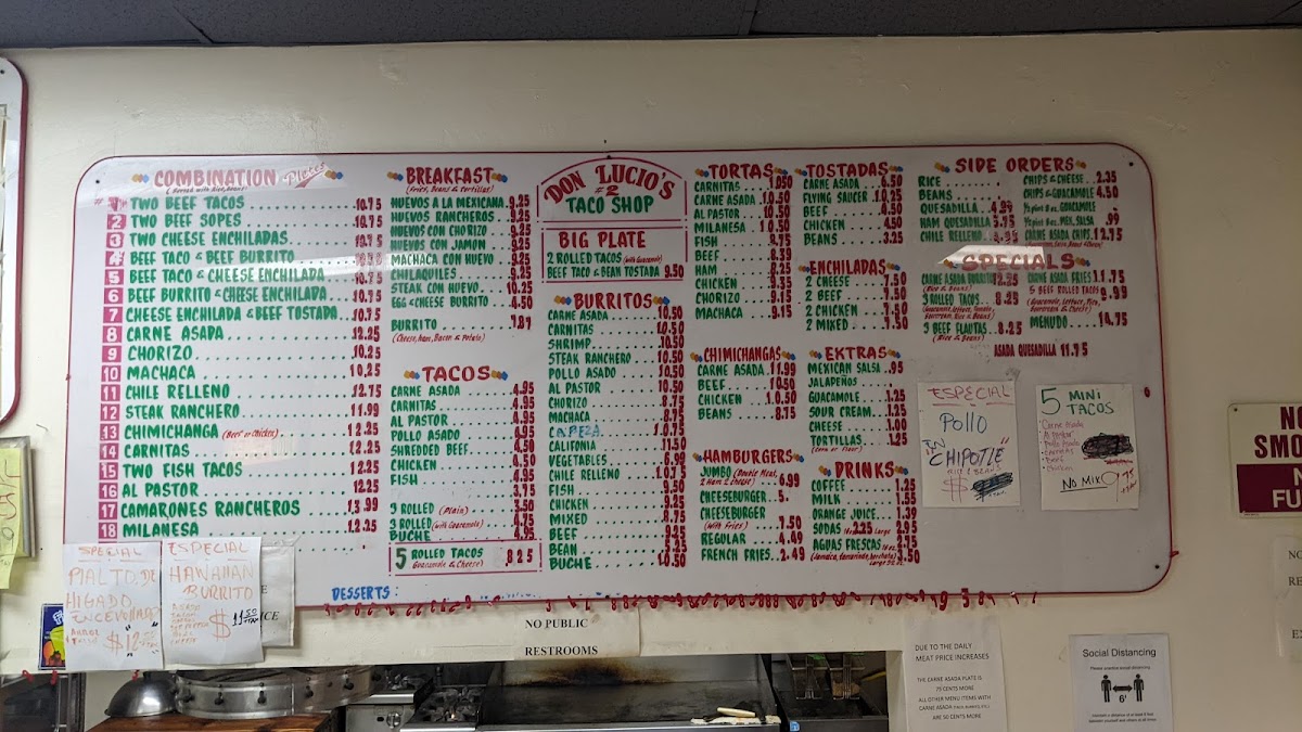 Don Lucio's Taco Shop II offers a straightforward and satisfying Mexican menu that feels like a neighborhood favorite. The selection focuses on classic, hearty dishes that suit casual lunches, quick dinners, or relaxed weekend cravings. You’ll find items built for comfort—think generous burritos like the Buche or California Burrito, satisfying chimichangas, and flavorful tostadas and enchiladas that pair well with simple, refreshing drinks.